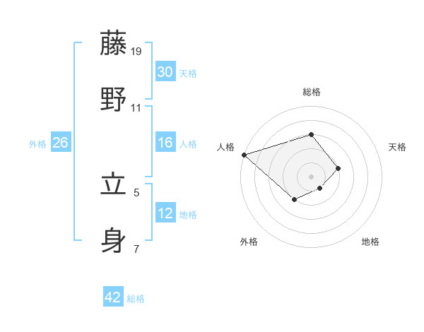 藤野 立身さんを姓名の画数から五運を鑑定