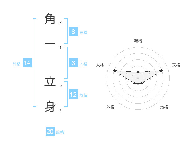 角一 立身さんの総格は20画の1点!