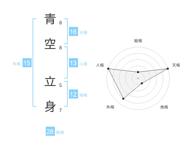 青空 立身さんの天格は16画の5点!