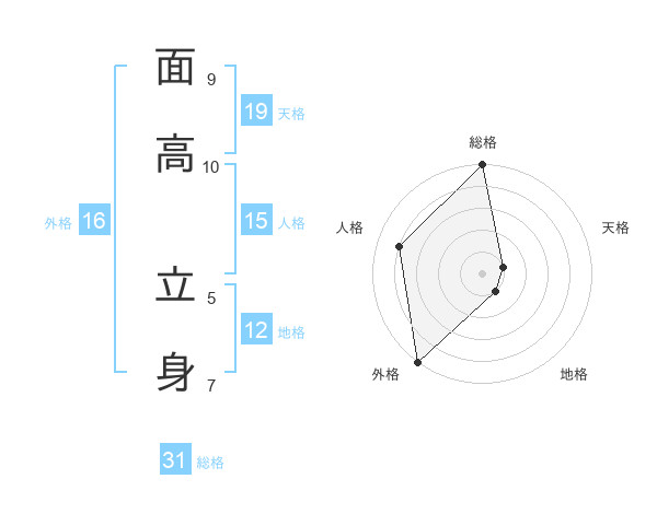 面高 立身さんの天格は19画の1点!