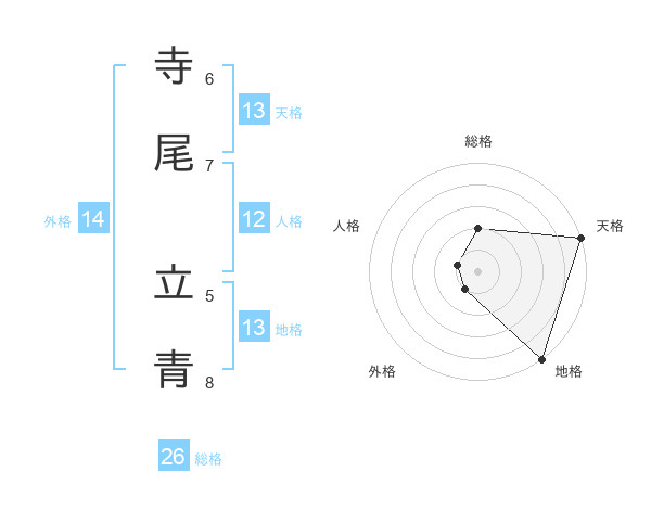 寺尾 立青さんの総格は26画の2点!