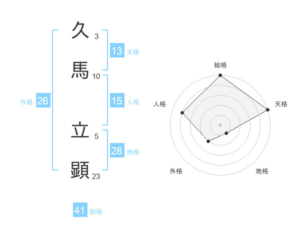 久馬 立顕さんの総格は41画の5点!