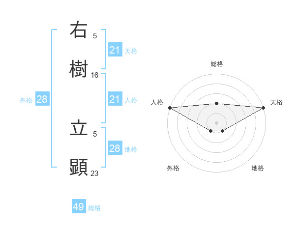 右樹 立顕さんの天格は21画の5点!