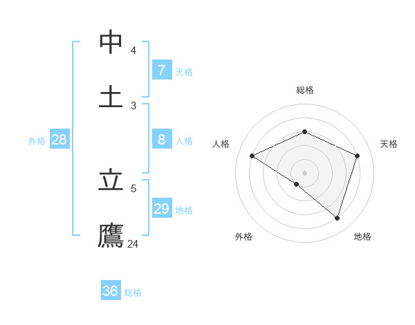 中土 立鷹さんの地格は29画の4点!