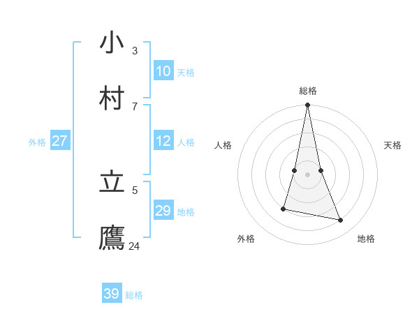 小村 立鷹さんを姓名の画数から五運を鑑定
