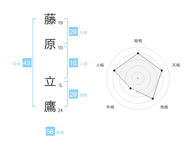 藤原 立鷹さんの地格は29画の4点!