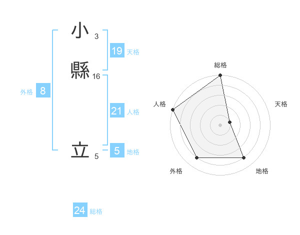 小縣 立さんの総格は24画の5点!
