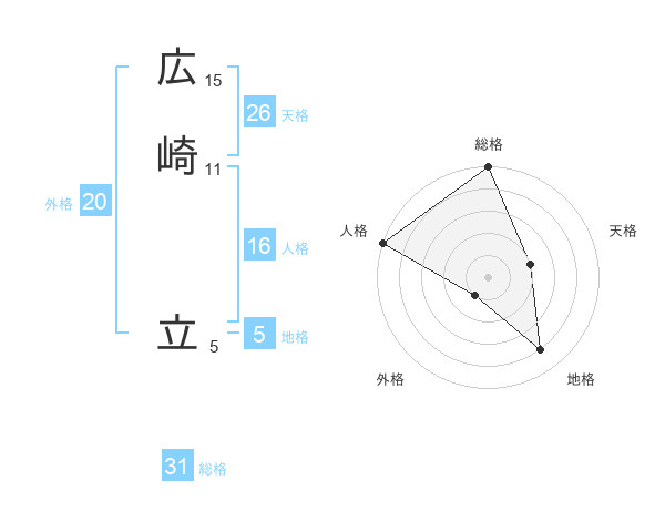 広崎 立さんの総格は31画の5点!
