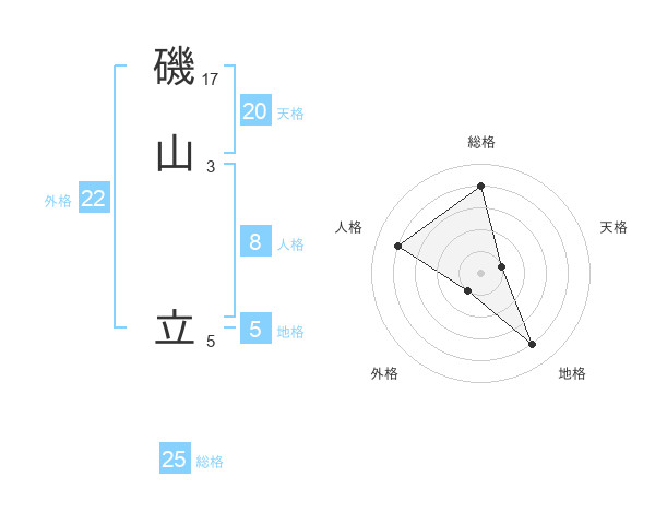 磯山 立さんの総格は25画の4点!