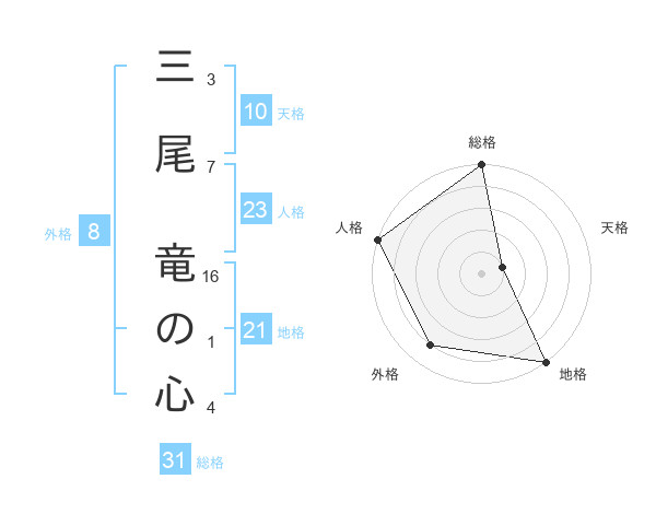 三尾 竜の心さんの総格は31画の5点