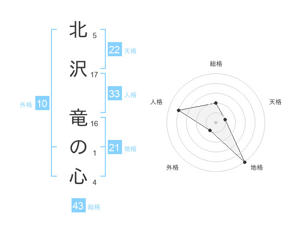 北沢 竜の心さんの地格は21画の5点!