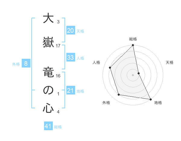 大嶽 竜の心さんを姓名の画数から五運を鑑定
