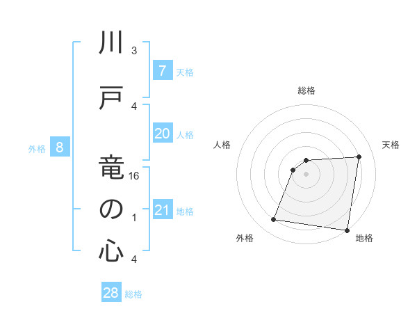 川戸 竜の心さんを姓名の画数から五運を鑑定