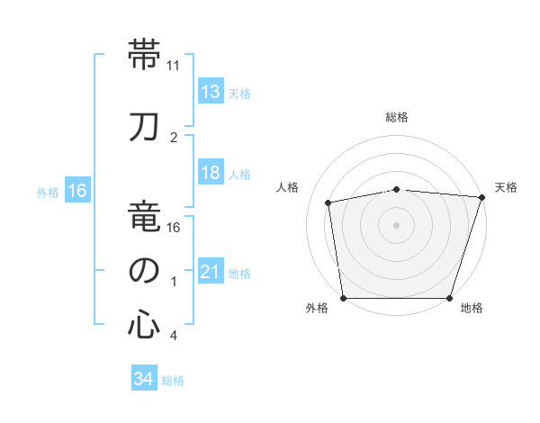 帯刀 竜の心さんの総格は34画の2点!