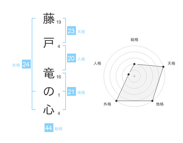 藤戸 竜の心さんの天格は23画の5点!