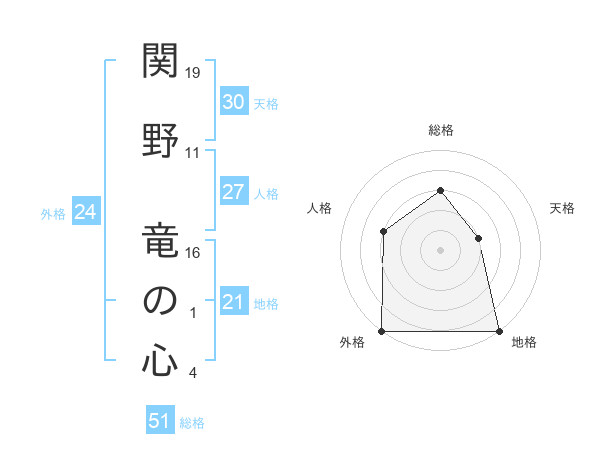 関野 竜の心さんを姓名の画数から五運を鑑定