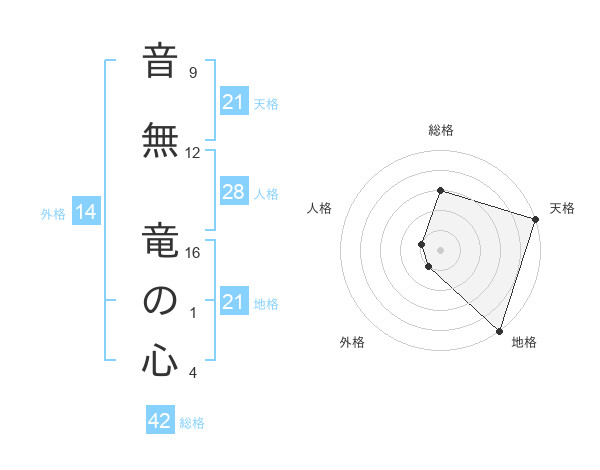 音無 竜の心さんを姓名の画数から五運を鑑定