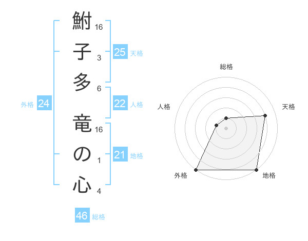 鮒子多 竜の心さんを姓名の画数から五運を鑑定