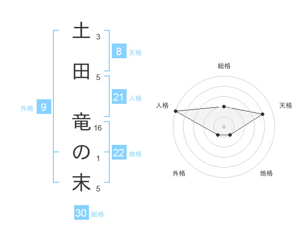 土田 竜の末さんの総格は30画の2点!