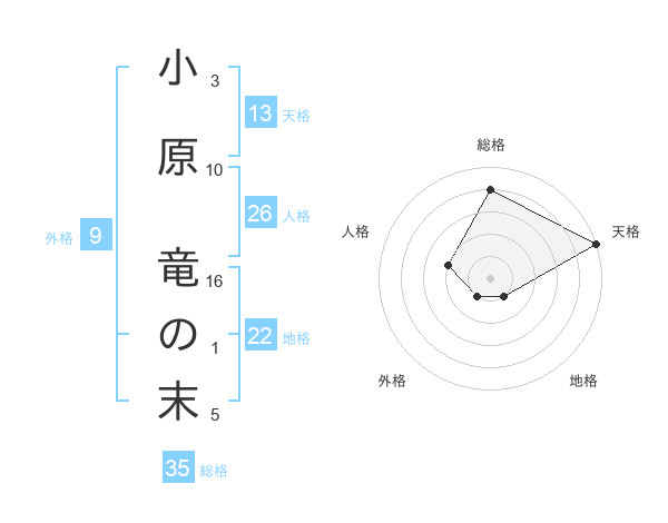 小原 竜の末さんを姓名の画数から五運を鑑定