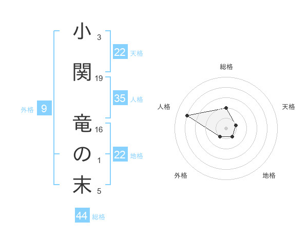 小関 竜の末さんを姓名の画数から五運を鑑定