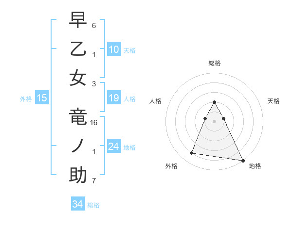 早乙女 竜ノ助さんを姓名の画数から五運を鑑定