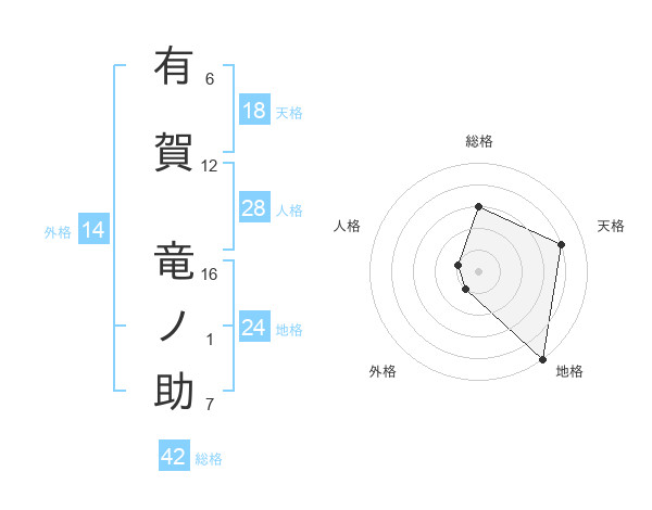 有賀 竜ノ助さんを姓名の画数から五運を鑑定