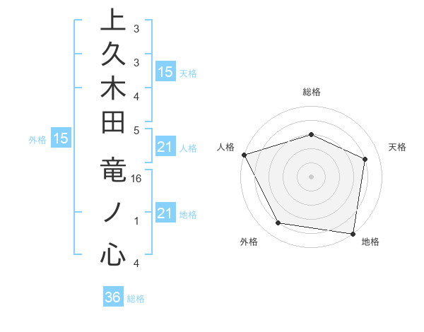 上久木田 竜ノ心さんを姓名の画数から五運を鑑定