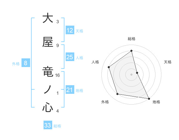 大屋 竜ノ心さんを姓名の画数から五運を鑑定