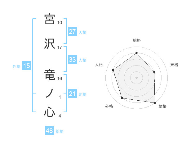 宮沢 竜ノ心さんを姓名の画数から五運を鑑定