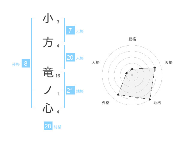 小方 竜ノ心さんを姓名の画数から五運を鑑定