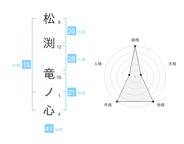 松渕 竜ノ心さんを姓名の画数から五運を鑑定
