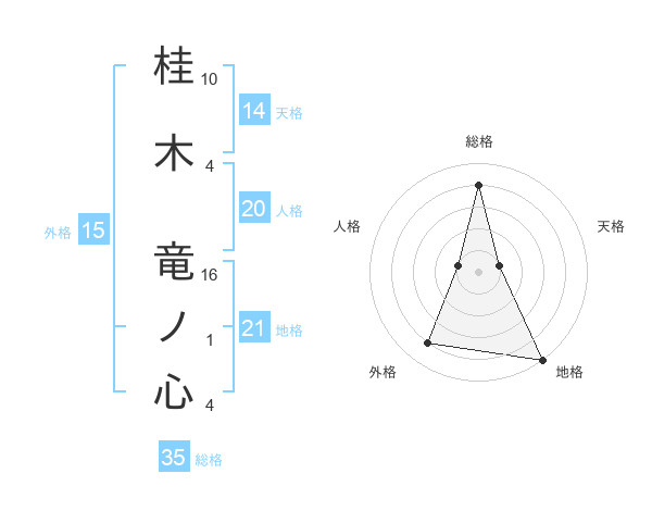 桂木 竜ノ心さんの地格は21画の5点!