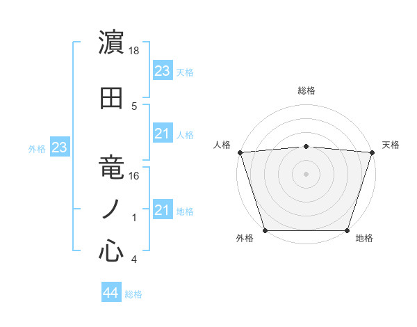 濵田 竜ノ心さんを姓名の画数から五運を鑑定