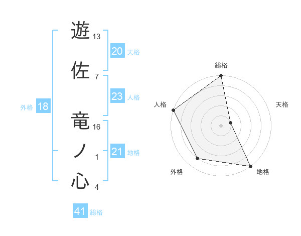 遊佐 竜ノ心さんの天格は20画の1点!