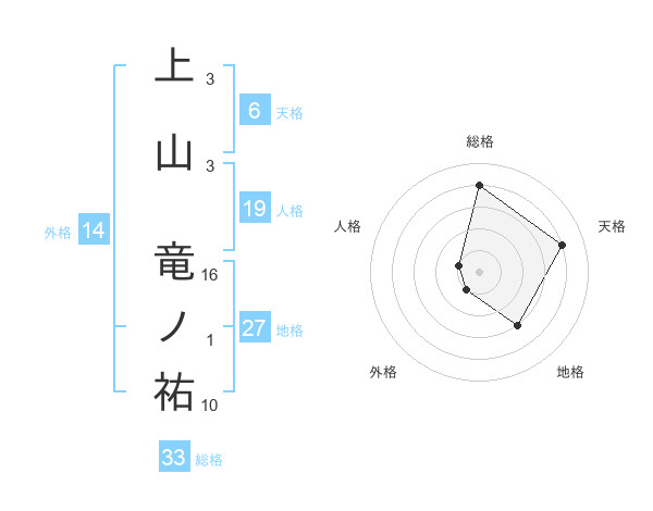 上山 竜ノ祐さんを姓名の画数から五運を鑑定