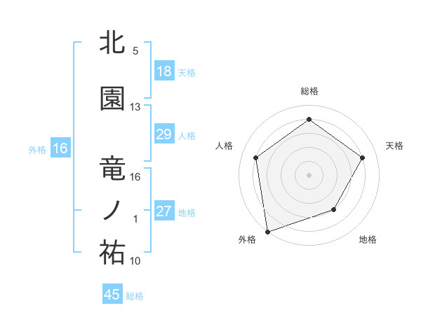 北園 竜ノ祐さんを姓名の画数から五運を鑑定