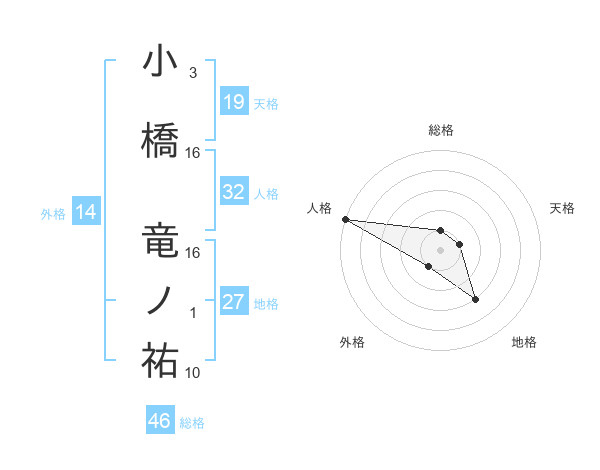 小橋 竜ノ祐さんを姓名の画数から五運を鑑定