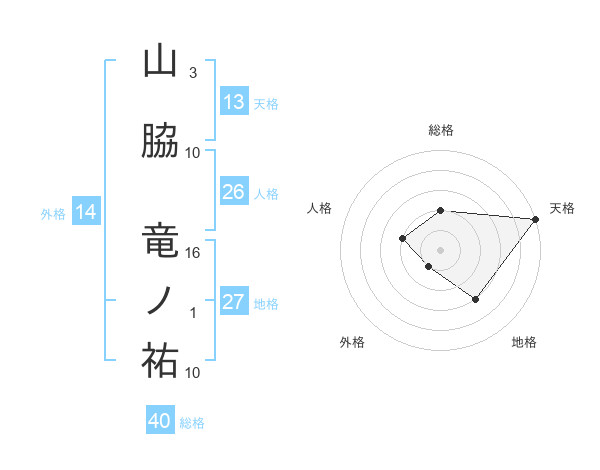 山脇 竜ノ祐さんを姓名の画数から五運を鑑定