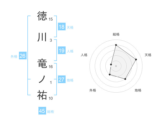 徳川 竜ノ祐さんの地格は27画の3点!