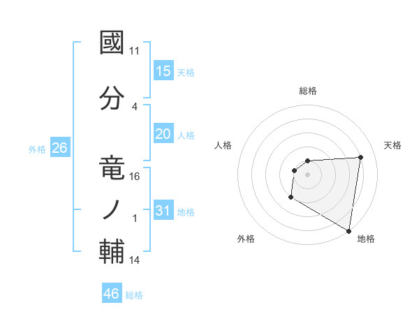 國分 竜ノ輔さんを姓名の画数から五運を鑑定