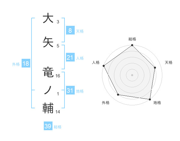 大矢 竜ノ輔さんを姓名の画数から五運を鑑定
