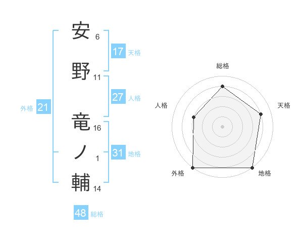 安野 竜ノ輔さんを姓名の画数から五運を鑑定