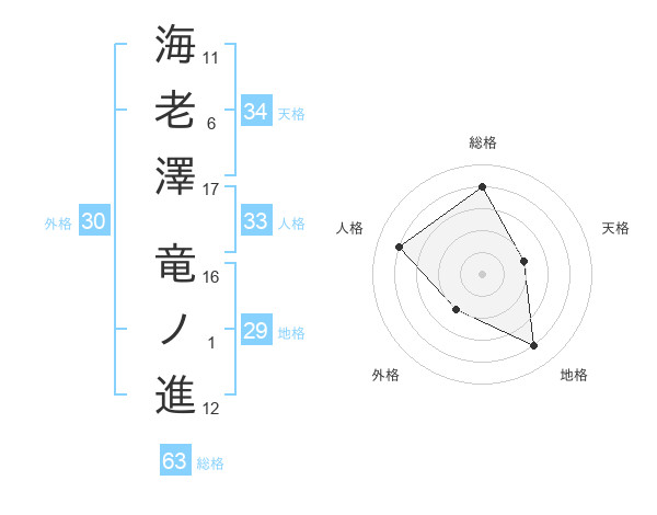 海老澤 竜ノ進さんを姓名の画数から五運を鑑定