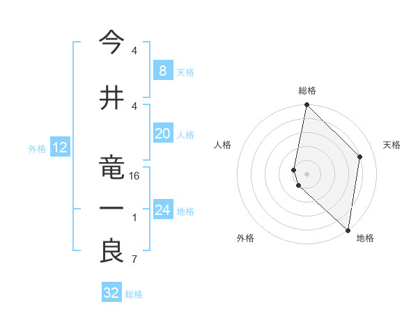 今井 竜一良さんを姓名の画数から五運を鑑定