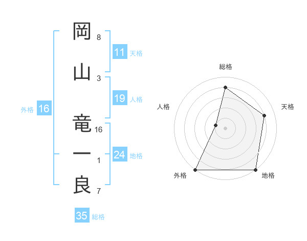 岡山 竜一良さんの総格は35画の4点!
