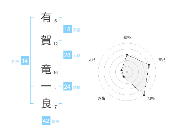 有賀 竜一良さんの地格は24画の5点!