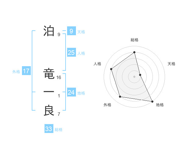 泊 竜一良さんの総格は33画の4点!
