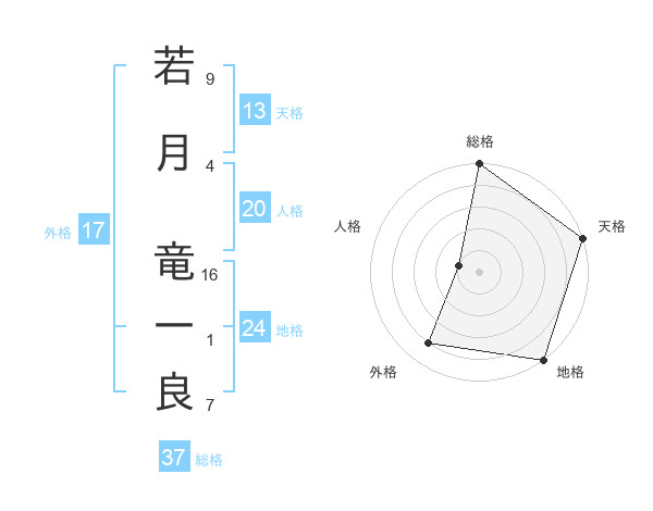 若月 竜一良さんを姓名の画数から五運を鑑定