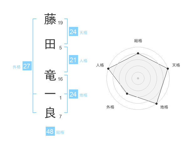 藤田 竜一良さんを姓名の画数から五運を鑑定